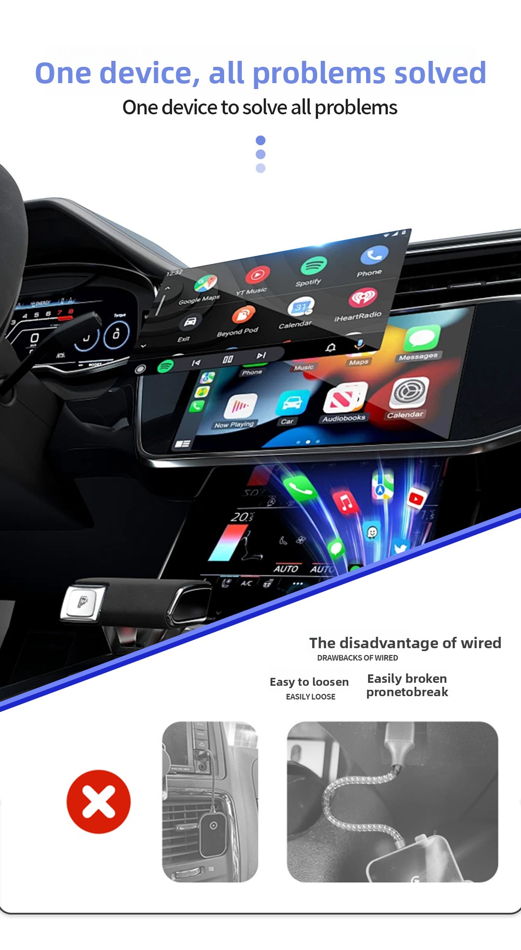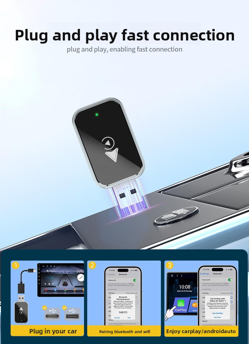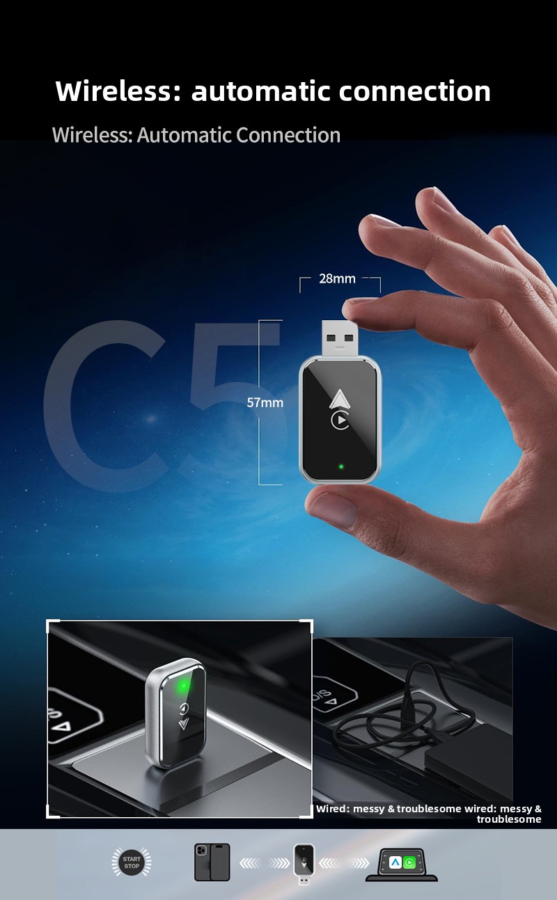 Enhanced Convenience: Eliminates the need for cables, providing a clutter-free driving experience.